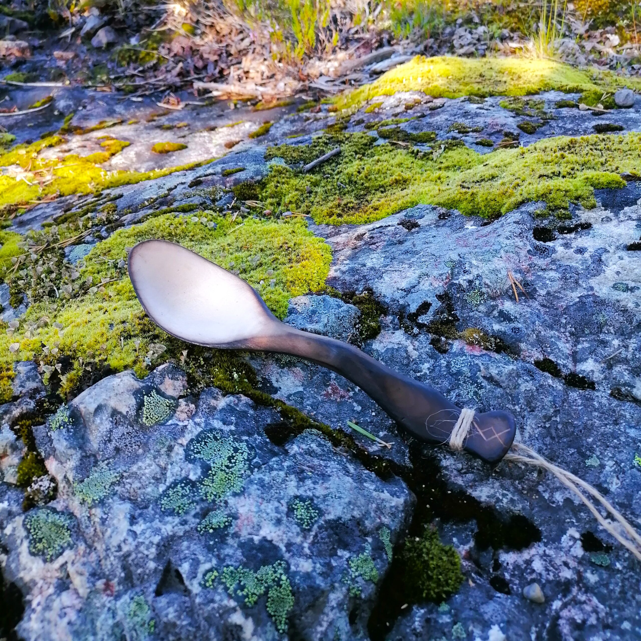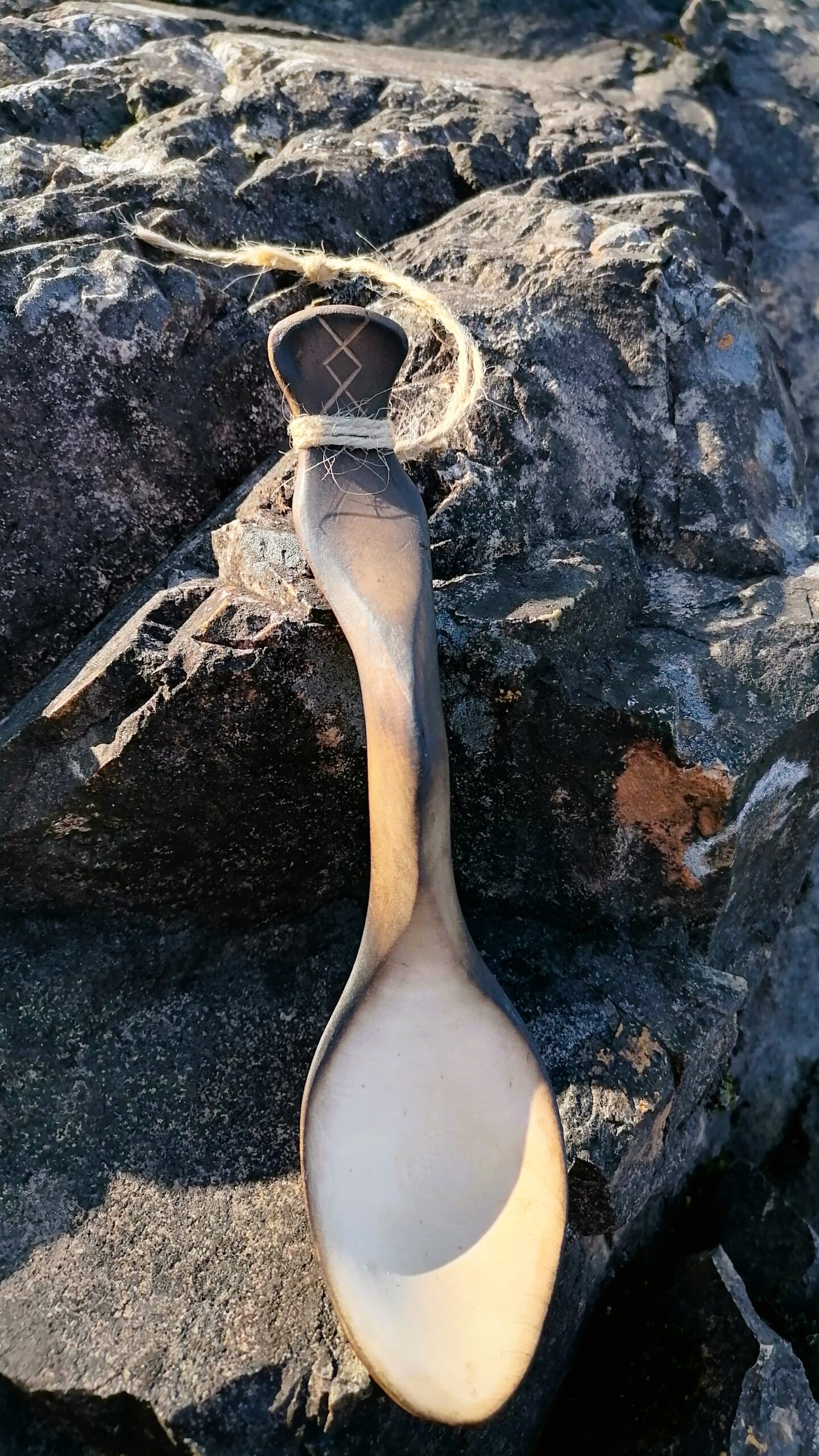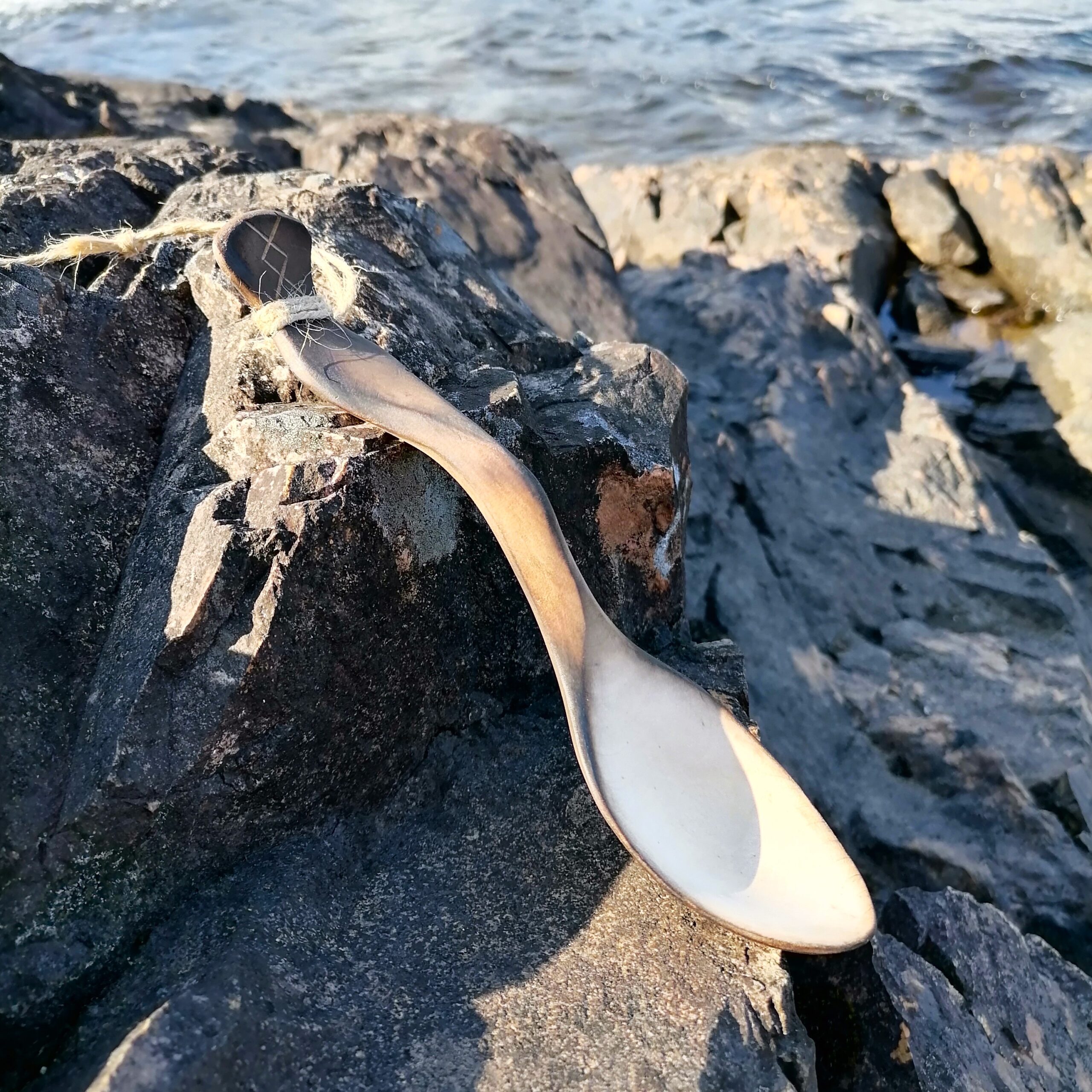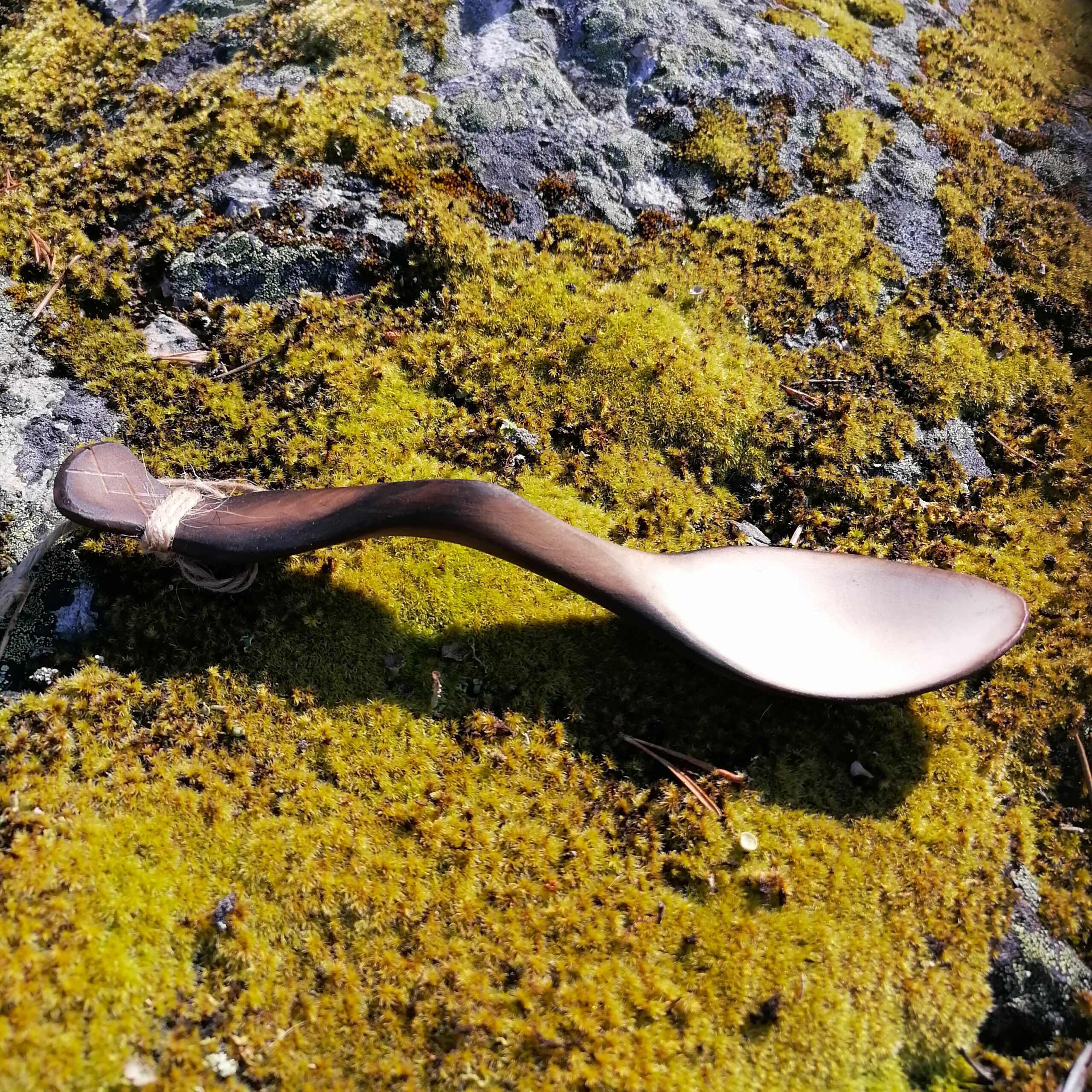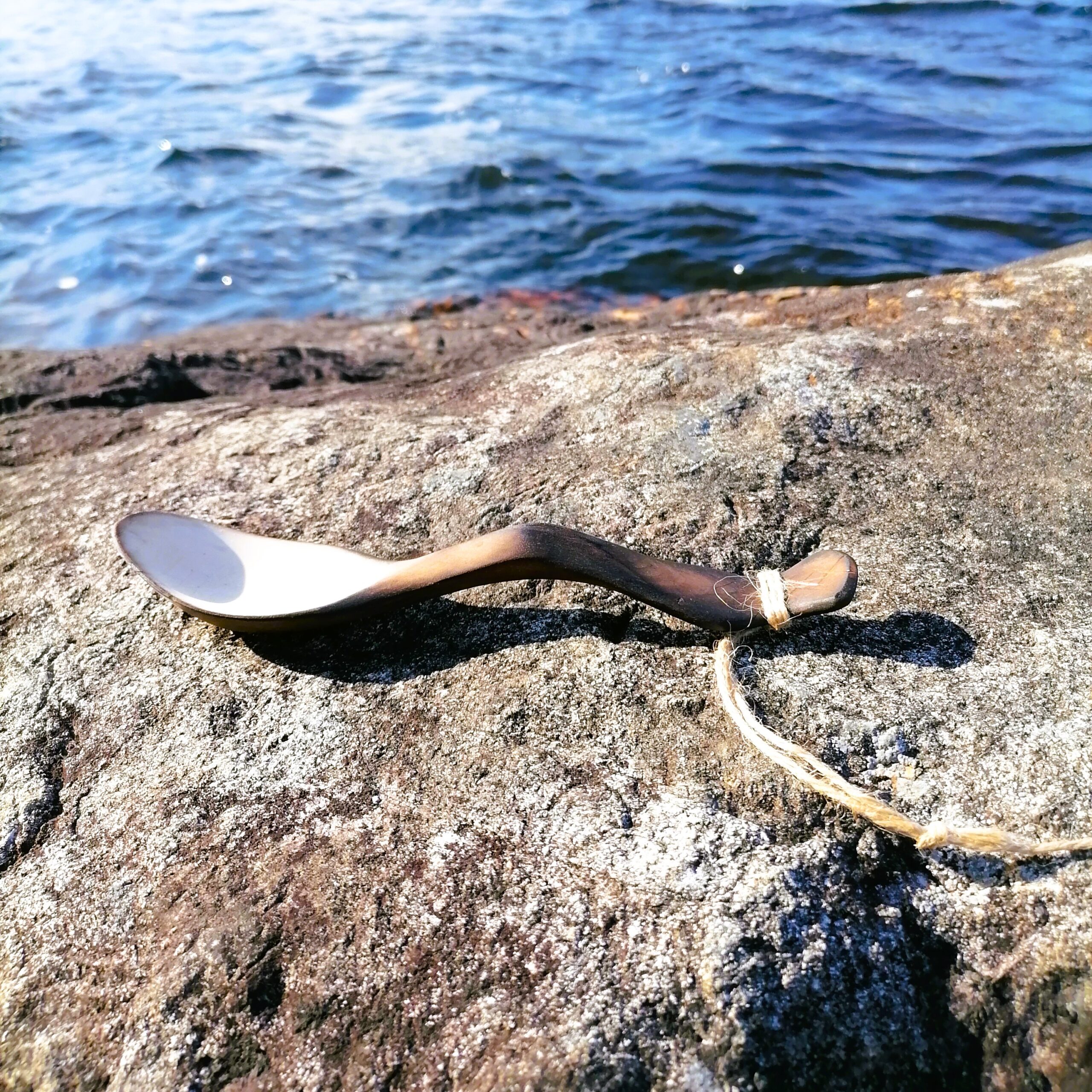 – The outside of the spoon is burned over open birch wood fire, hence the brown color.