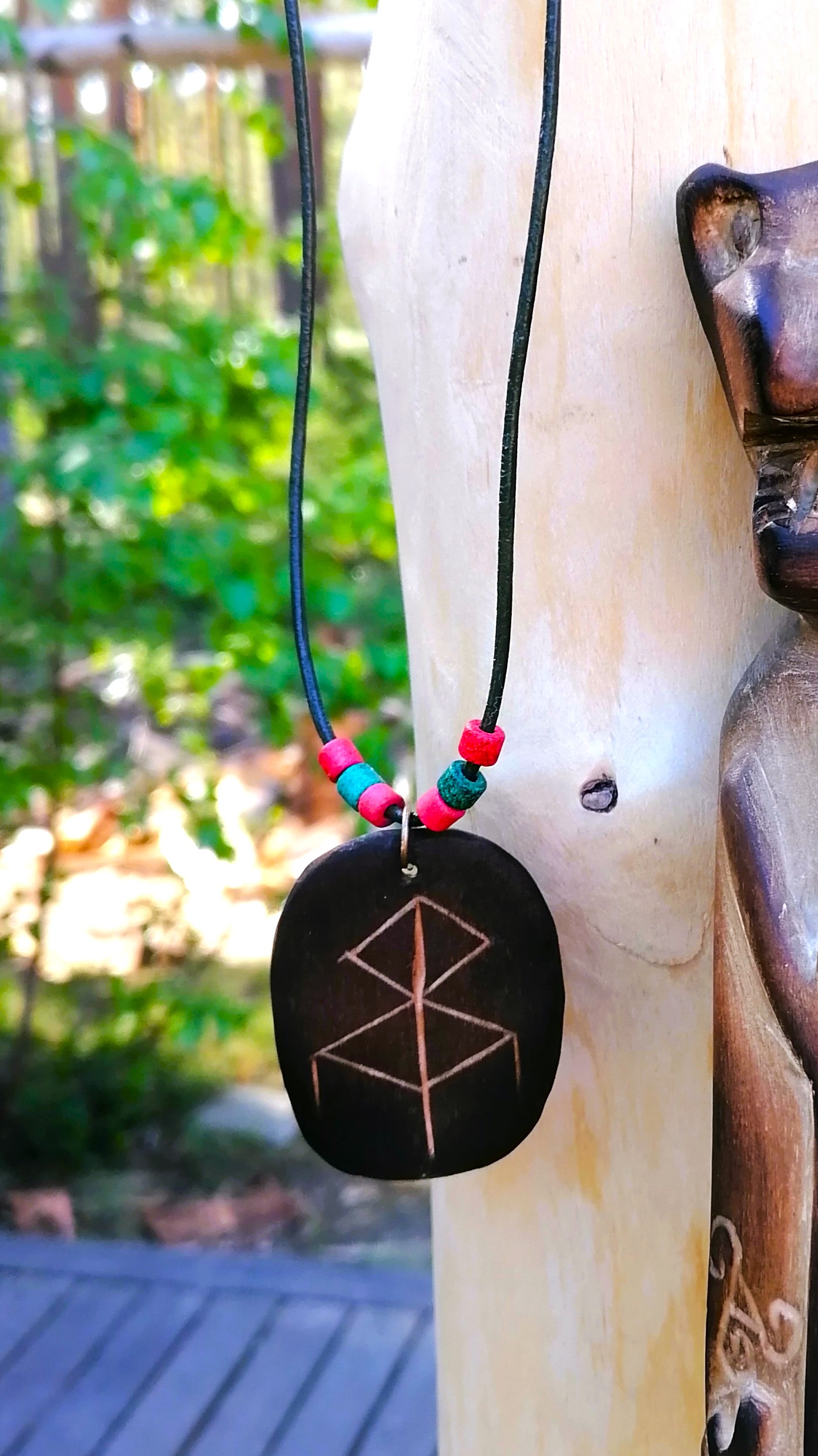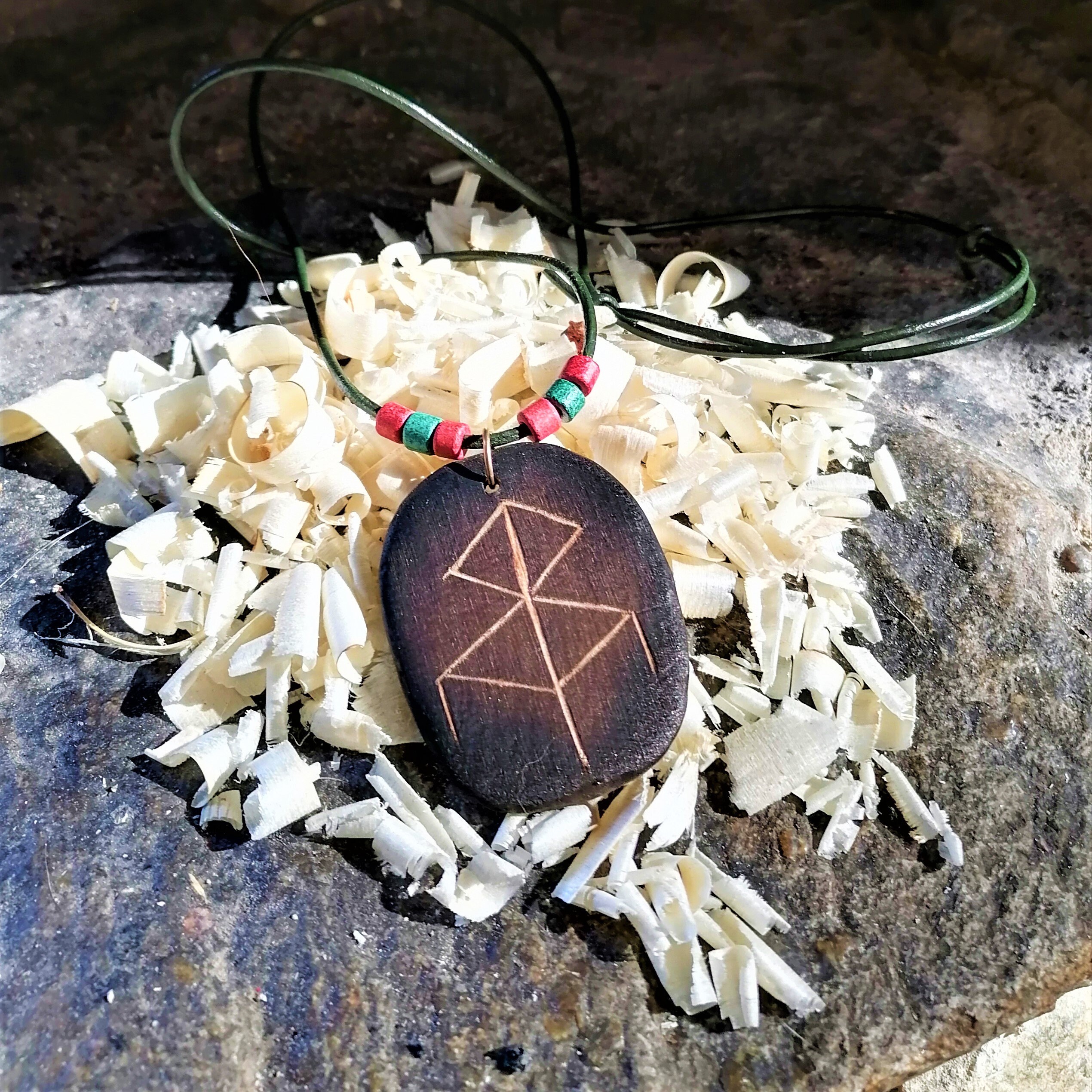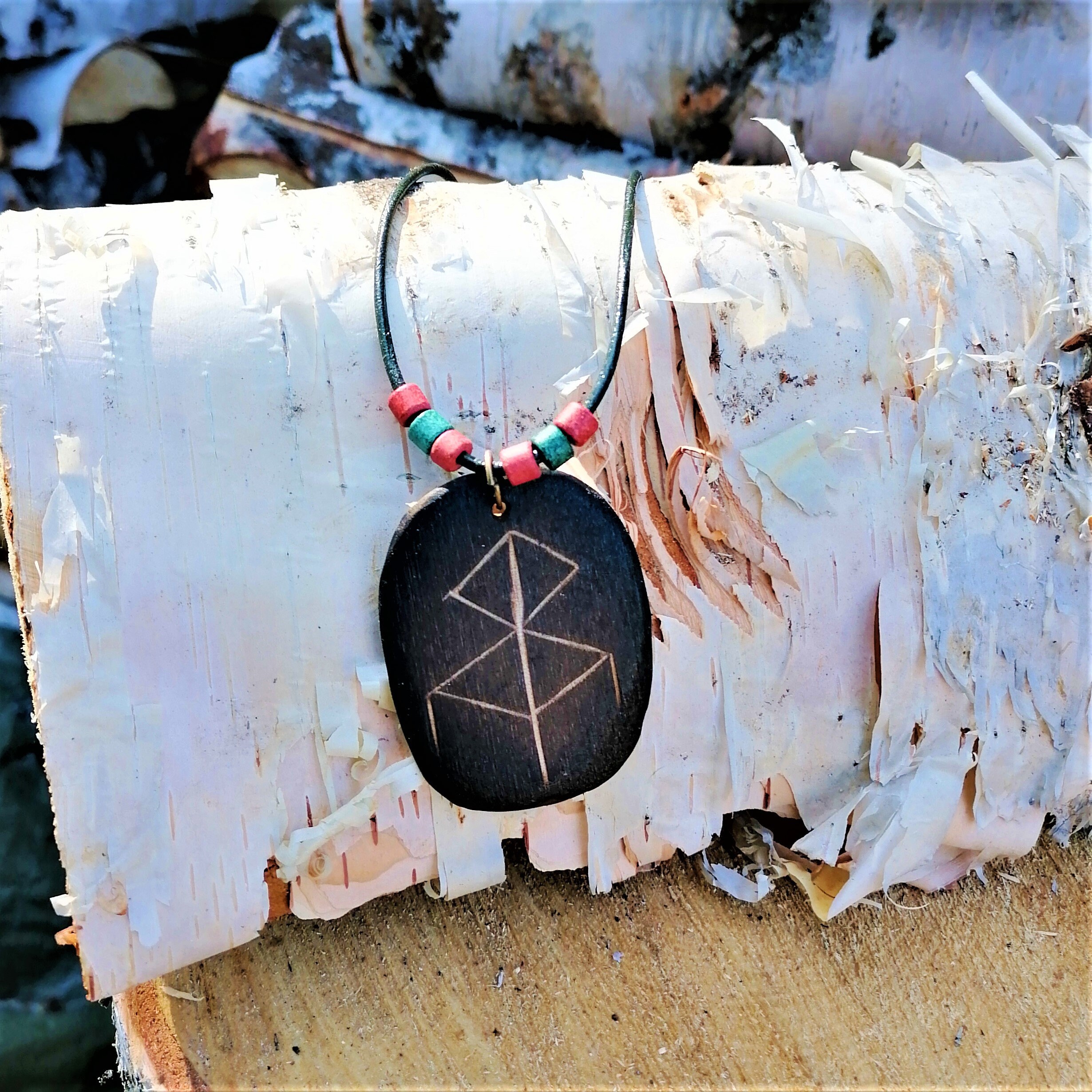 – Warm, smooth birch wood pendant, hand-carved with a Nordic rune
