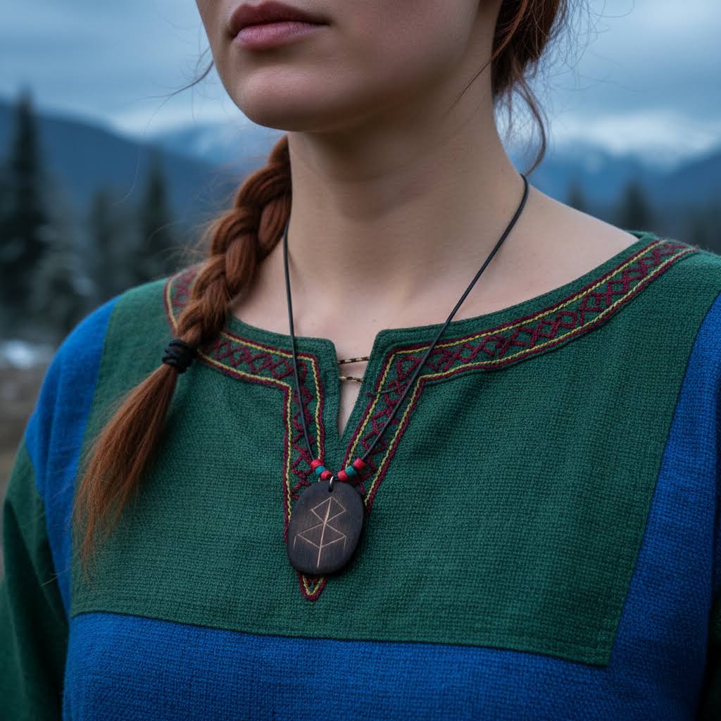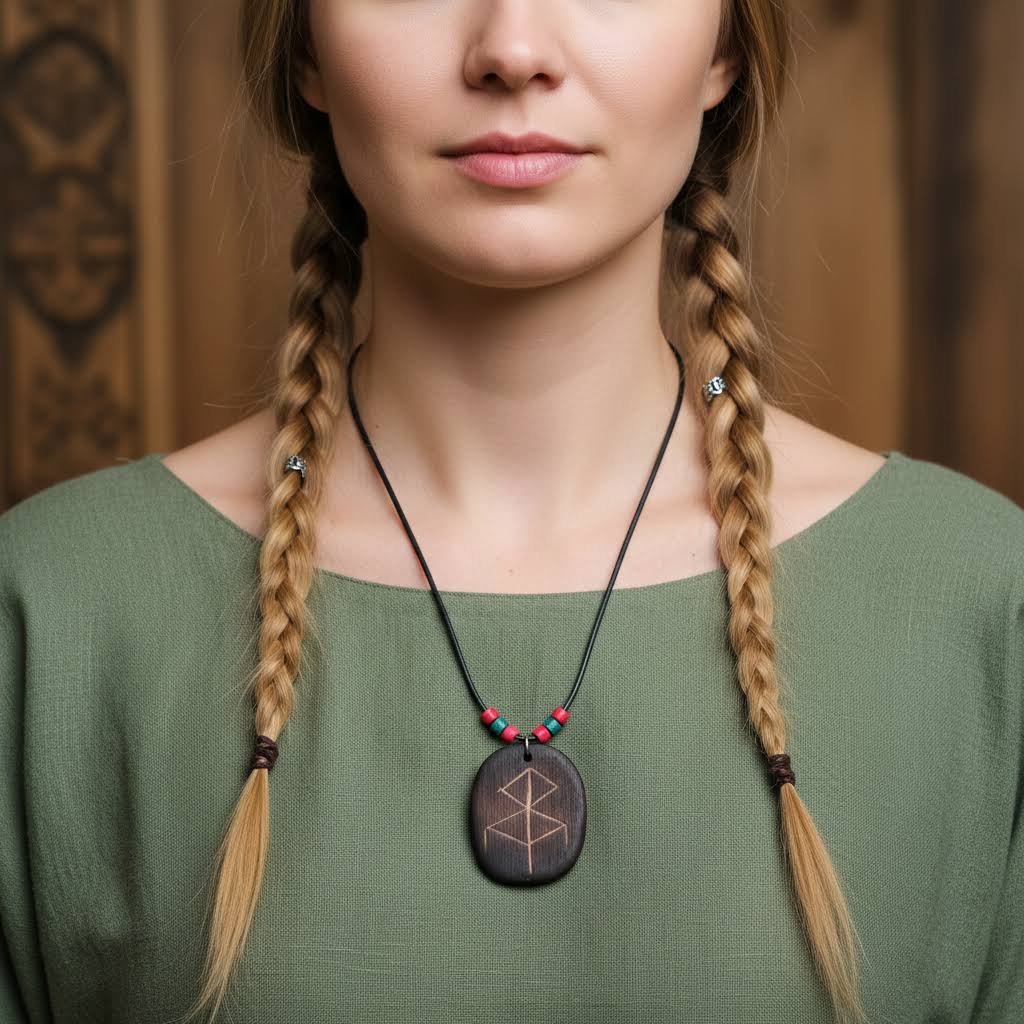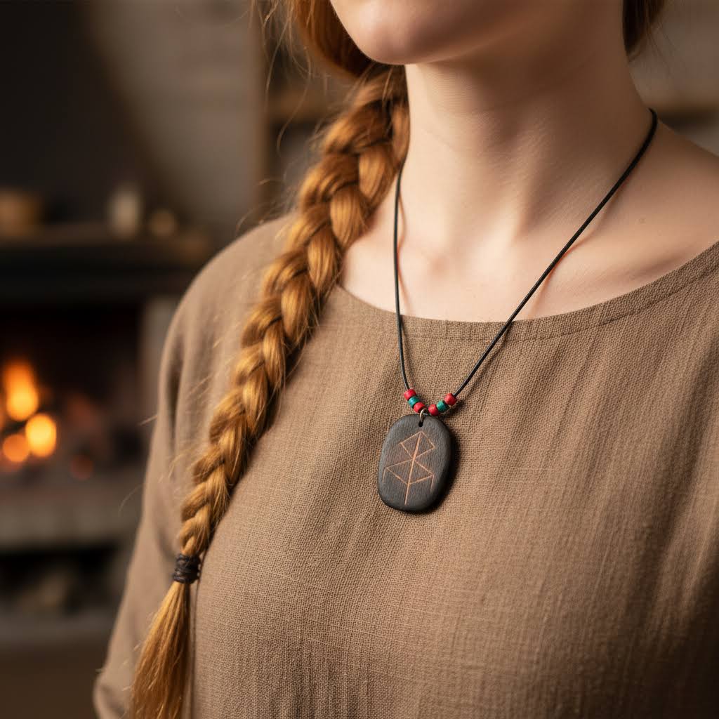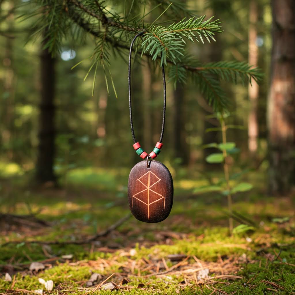 – Warm, smooth birch wood pendant, hand-carved with a Nordic rune