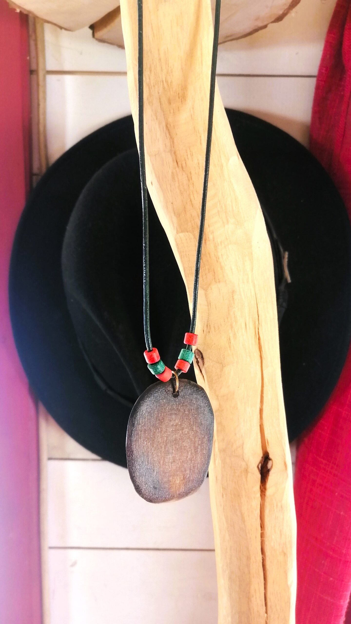 – wooden pendant also known as: collier avec pendentif en bois – Halsband mit Holzanhänger – collar con colgante de madera – halsband dam